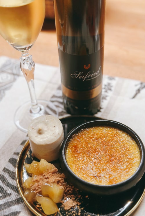 Dieser Riesling-Dessertwein aus Neuseeland passt überdies hervorragend zu bestimmten Käsesorten, insbesondere zu milden, cremigen Sorten wie Blauschimmelkäse oder Frischkäse. Auch die Süße und die Vanillearomen von Crème Brûlée harmonieren gut mit dem „Sweet Agnes“ Riesling.